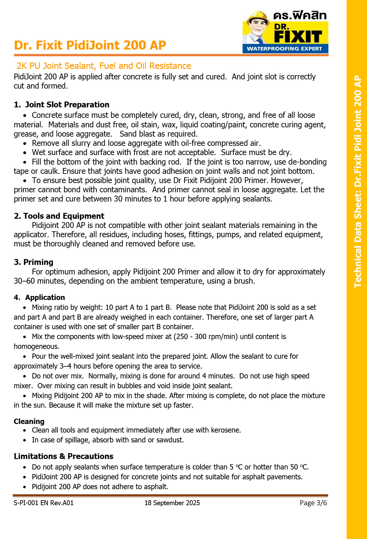 Dr. Fixit PidiJoint 200 APis a high performance polyurethane based joint sealants. It has excellence resistance property to hot fuel fume and oil. Application does not need heating nor flame. PidiJoint 200 AP is cured when two components are mixed together.