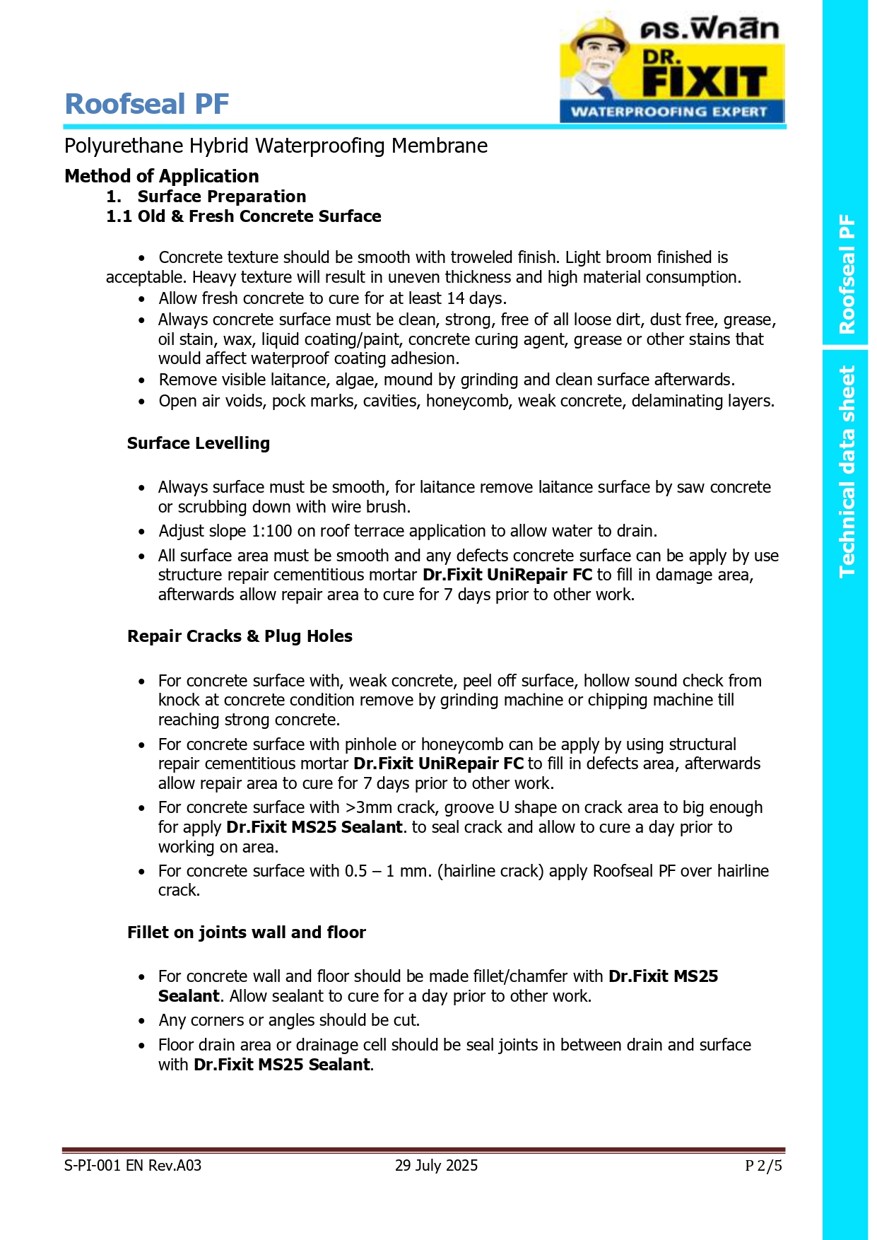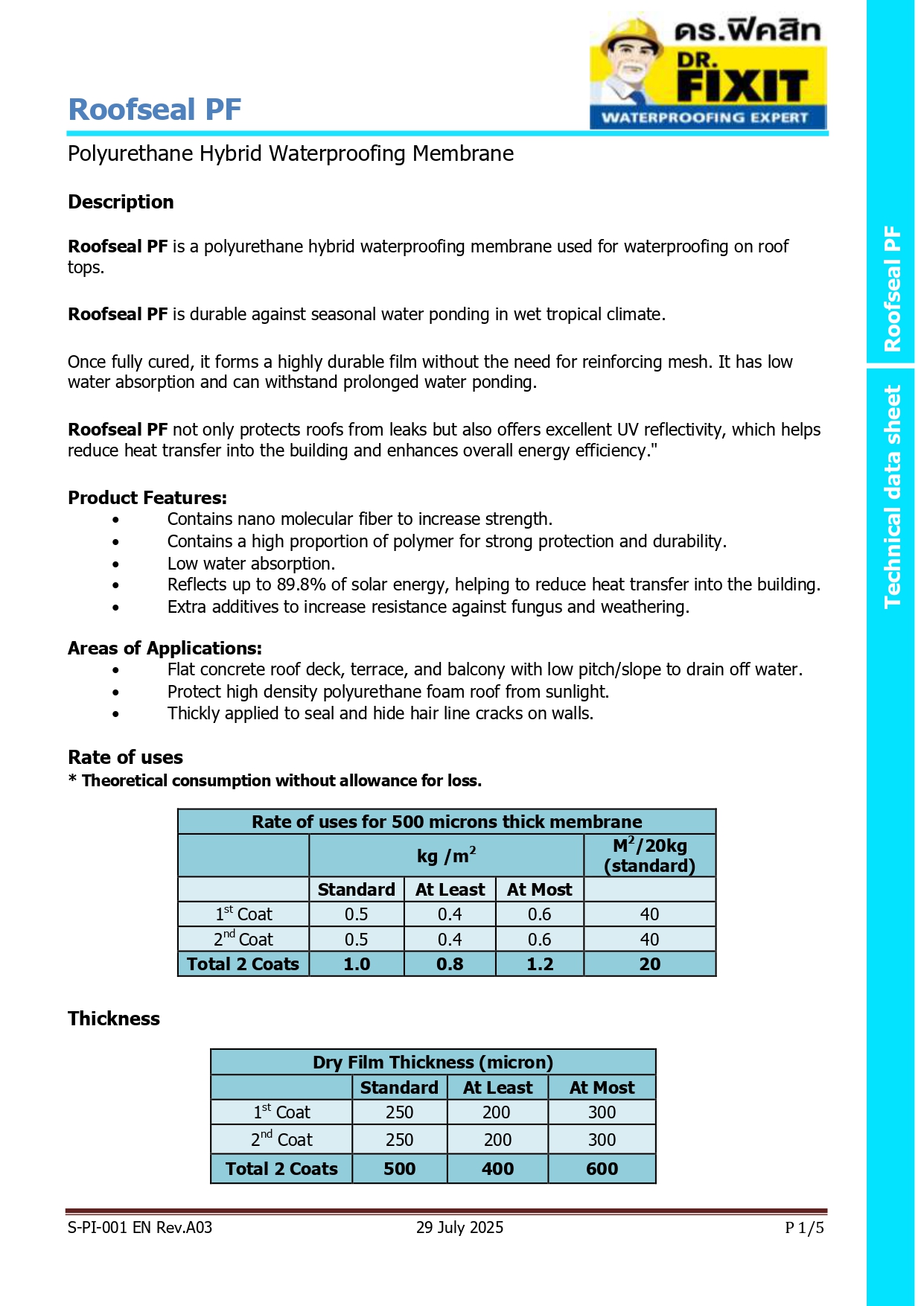 Roofseal PF is a polyurethane hybrid waterproofing membrane used for waterproofing on roof tops.