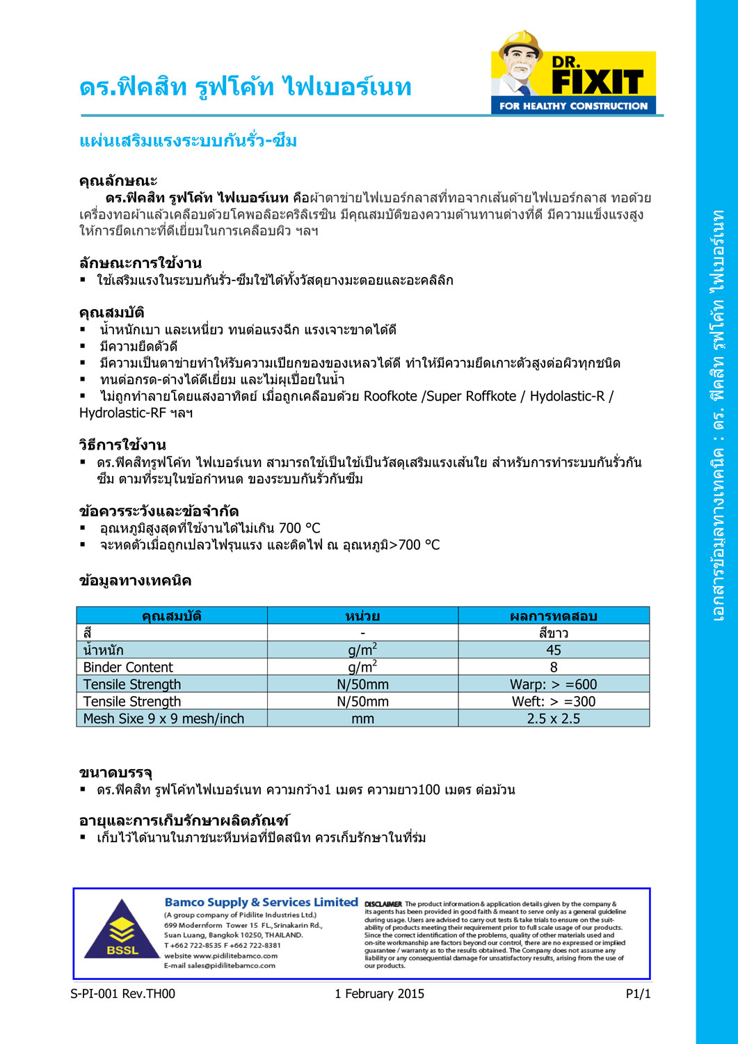 ดร.ฟิคสทิ รูฟโค้ท ไฟเบอร์เนท คือผ้าตาข่ายไฟเบอร์กลาสที่ทอจากเส้นดายไฟเบอร์กลาสที่ทอด้วยเครื่องทอผ้าแล้วเคลือบด้วยโคพอลีอะคริลิกเรซิน มีคุณสมบัตของความต้านทานด่างที่ดีมีความแข็งแรงสูงให้การยึดเกาะที่ดีเยี่ยมในการเคลือบผิว ฯลฯ