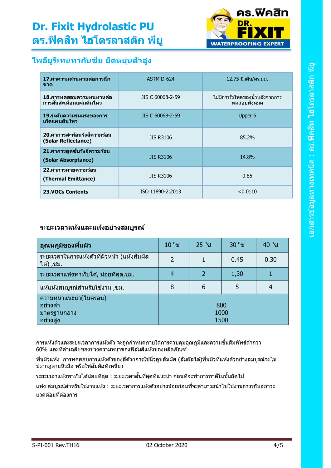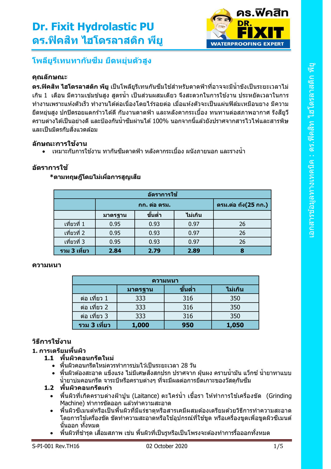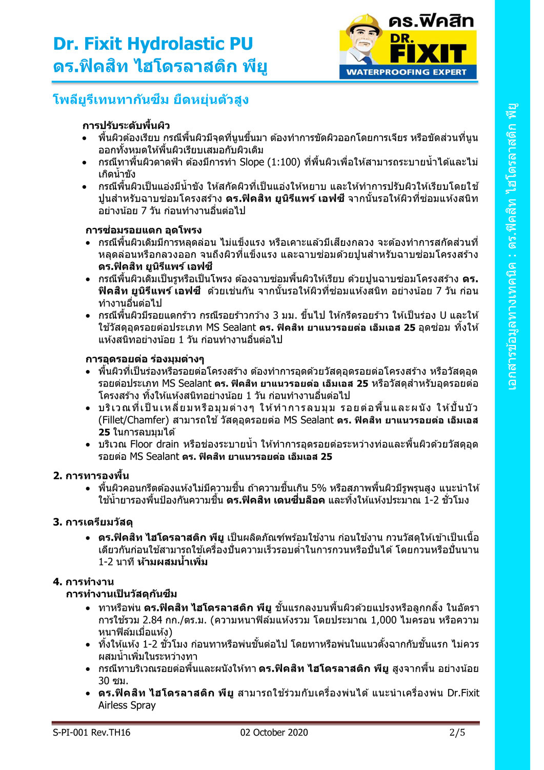 ดร.ฟิคสิท ไฮโดรลาสติก พียู ใช้งานง่าย แห้งตัวเร็ว ไม่ต้องเสริมความแข็งแรงด้วยแผ่นไฟเบอร์ ลดความยุ่งยากและเวลาในการทำงาน ป้องกันน้ำซึมผ่านได้ 100% ไม่บวมพอง ปกปิดรอยแตกร้าว ไร้รอยต่อ