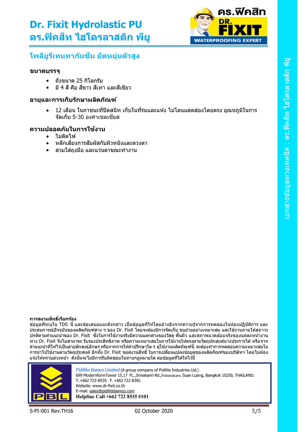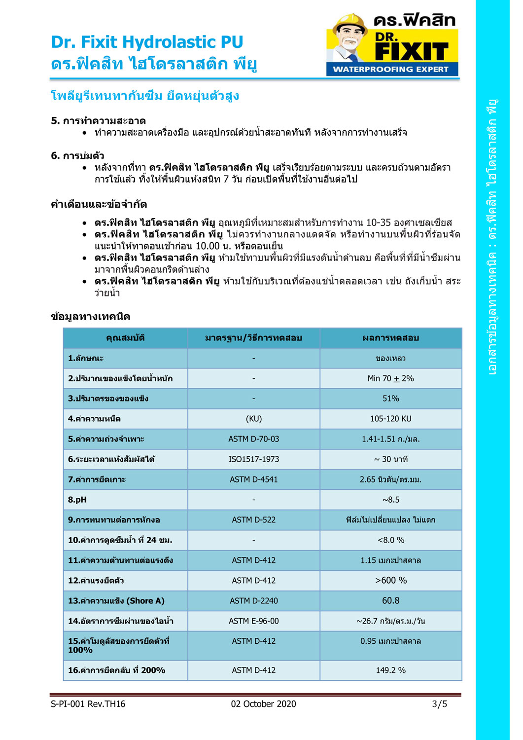ดร.ฟิคสิท ไฮโดรลาสติก พียู เป็นโพลียูรีเทนผสมกับอะคริลิค สูตรน้ำ มีความเข้มข้นสูงเป็นส่วนผสมเดียว เมื่อแห้งตัวจะเป็นแผ่นฟิล์มคล้ายยาง มีความยืดหยุ่นสูง ลดปัญหาโครงสร้างมีการยืดหดตัว สำหรับงานกันซึมที่ต้องการความแข็งแรง ทนทานต่อสภาพอากาศ รังสียูวี คราบด่างได้เป็นอย่างดี
