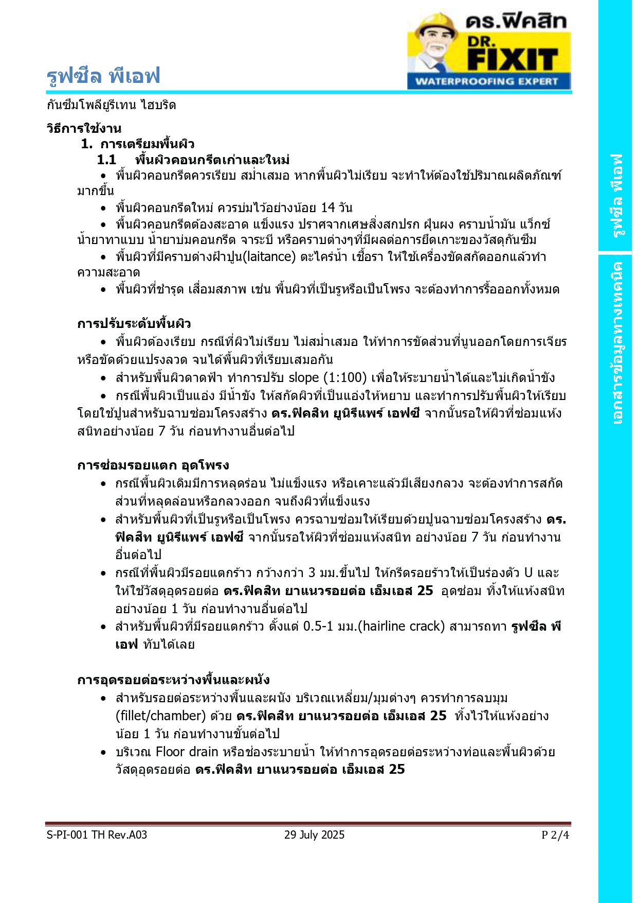 - กันซึมหลังคาคอนกรีต ดาดฟ้า ระเบียง ที่มีความลาดเอียงต่ำในการระบายน้ำ