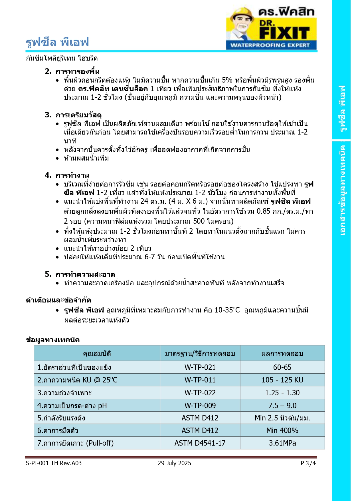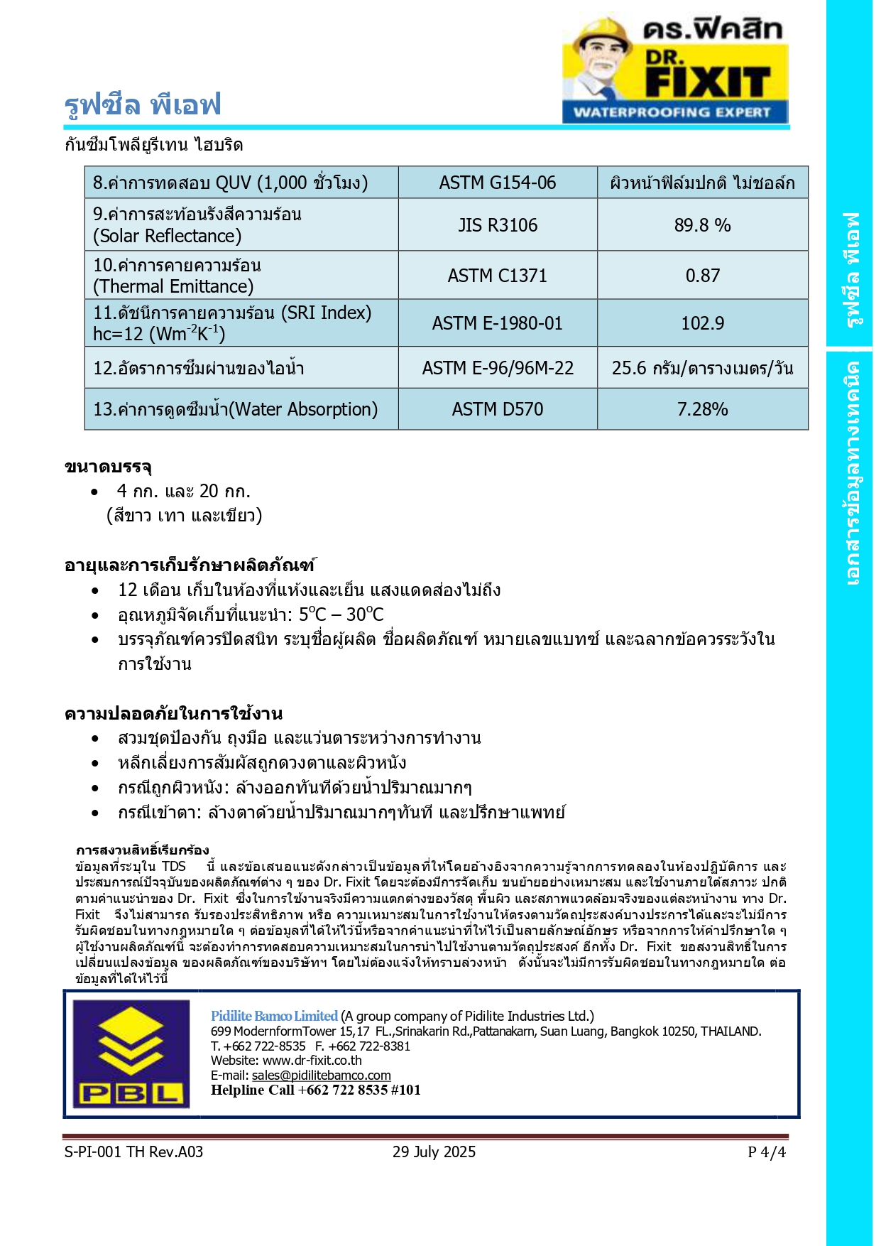 รูฟซีล พีเอฟ กันซึมสูตรโพลียูรีเทน ไฮบริด สำหรับทากันซึมหลังคา ดาดฟ้า สามารถทนทานต่อบริเวณที่มีน้ำขังได้ และทนทานต่อสภาวะอากาศได้ดี